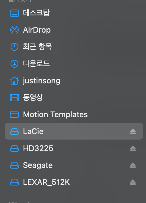 - 외장하드가 연결되어도 사이드바에 자동으로 등록되지 않음
